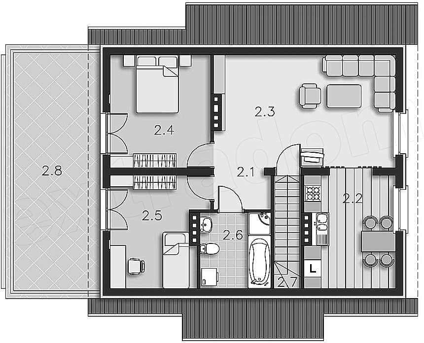 - В доме Пин Ап 5 комнат, но вы можете изменить их количество на этапе проектирования.